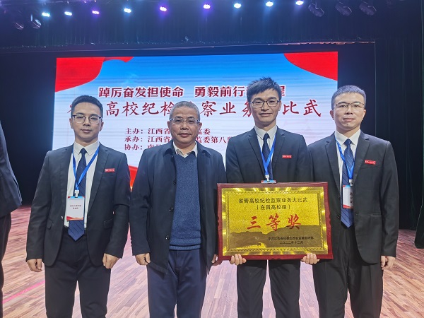 本次比赛分初赛和复赛两场,设“必答、抢答、案例分析、主题陈述”等比赛环节,比赛共设团体一等奖1个、二等奖1个、三等奖2个,在昌的18所省管高校派出54名纪检监察干部同台竞技、展现风采。经过激烈角逐,我校纪委代表队凭借扎实的业务基础、顽强的拼搏精神和稳定的现场发挥,在比赛中脱颖而出,以总分第四名的成绩获得团体三等奖。