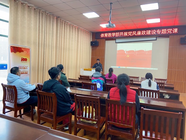 为进一步增强党员干部廉洁自律意识,提高教师队伍整体素质,切实改进工作作风,11月28日,体育教学部党总支书记杜海赣为教职工讲授党风廉政建设专题党课。