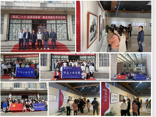 据悉,信息工程学院共选送5幅书画类作品参加学校“喜迎二十大 勤廉谱新篇”廉洁书画艺术作品征集活动,其中,书法篆刻类作品《古文三则》(作者:王正阳)、《浮梁古县衙三堂楹联赏析》(作者:阙建华)分别获得三等奖并入选作品展。(文/陈谣 图/李佳娟)