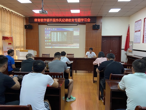 9月27日下午,体育教学部在体育馆113会议室召开廉政建设和作风建设专题学习会。会议由党总支书记杜海赣主持,部门全体教职工参加。