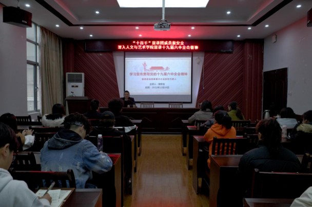 12月16日下午,校纪委书记殷安全在人文与艺术学院联系班级宣讲党的十九届六中全会精神以及江西省第十五次党代会精神,2019级网络与新媒体专业全体学生、人文与艺术学院部分教工聆听了宣讲。