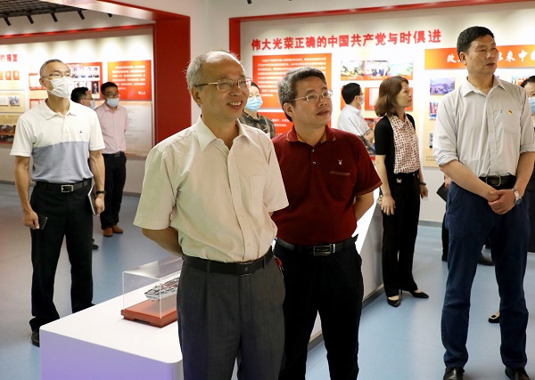 江西科技学院党委副书记、副校长黄辉玲,纪委书记夏拥华热情接待了我校考察调研一行并实地陪同考察,详细介绍了基地建设和开放、管理、使用情况。该基地分为序厅、党史厅、江西红色文化厅、复兴之路厅、校史厅五个部分,各展厅展出内容以图片、文字为主,展出形式以平面、多媒体和实物模型相结合,主要展示了中国共产党的发展历程和在江西的发展历史,改革开放以来中国的“沧海巨变”,党的十八大、十九大以来的历史性成就,以及该校发展历程和党建思政工作成就等。2018年以来,该基地积极运用于入党积极分子培训、思想政治课程实践教学及新生入学教育等活动,在红色文化育人、加强思想引领方面取得了明显成效。基地配备了专职管理员负责日常管理维护和服务,建立了一支学生讲解员团队,目前已接待了众多来校参观交流的领导嘉宾、专家学者及院校师生,成为该校展示形象、服务社会的“窗口”。
