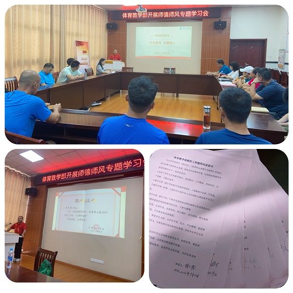 会后,全体教师签订《体育教学部教职工师德师风承诺书》。(文/图 彭建玲)