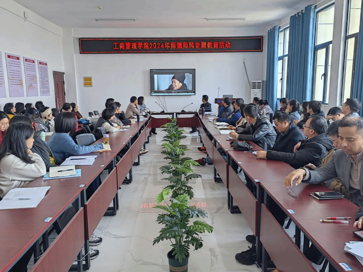近日,为加强师德师风建设,筑牢师德底线,抓好意识形态工作,工商管理学院在济民楼A412召开了2024年师德师风专题教育活动,学院领导班子成员及全体教职工参加。