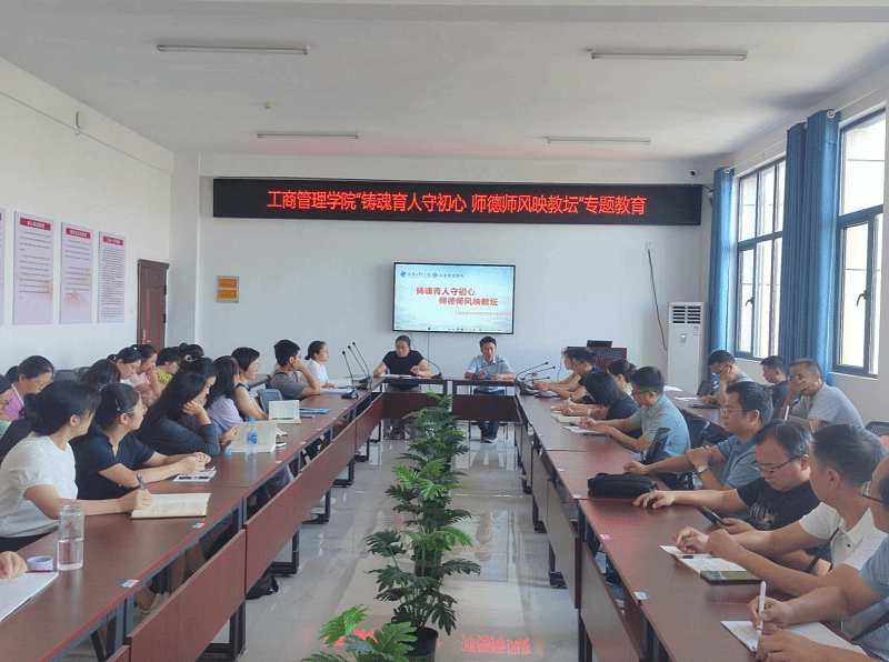 9月18日,工商管理学院开展了“铸魂育人守初心 师德师风映教坛”专题教育大会。会议由党委书记高丽明同志主持,全体教职工参加。