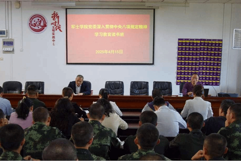 深化认识,把握要义。章建明从历史维度系统回顾了中央八项规定出台的背景意义,深入解读其核心要义与时代价值。他深入剖析教育领域违反中央八项规定精神的典型案例,要求全体教职工要以案为鉴,严守“师德红线”,坚决杜绝“人情分”“照顾分”等不正之风,确保军士生教育公平公正。